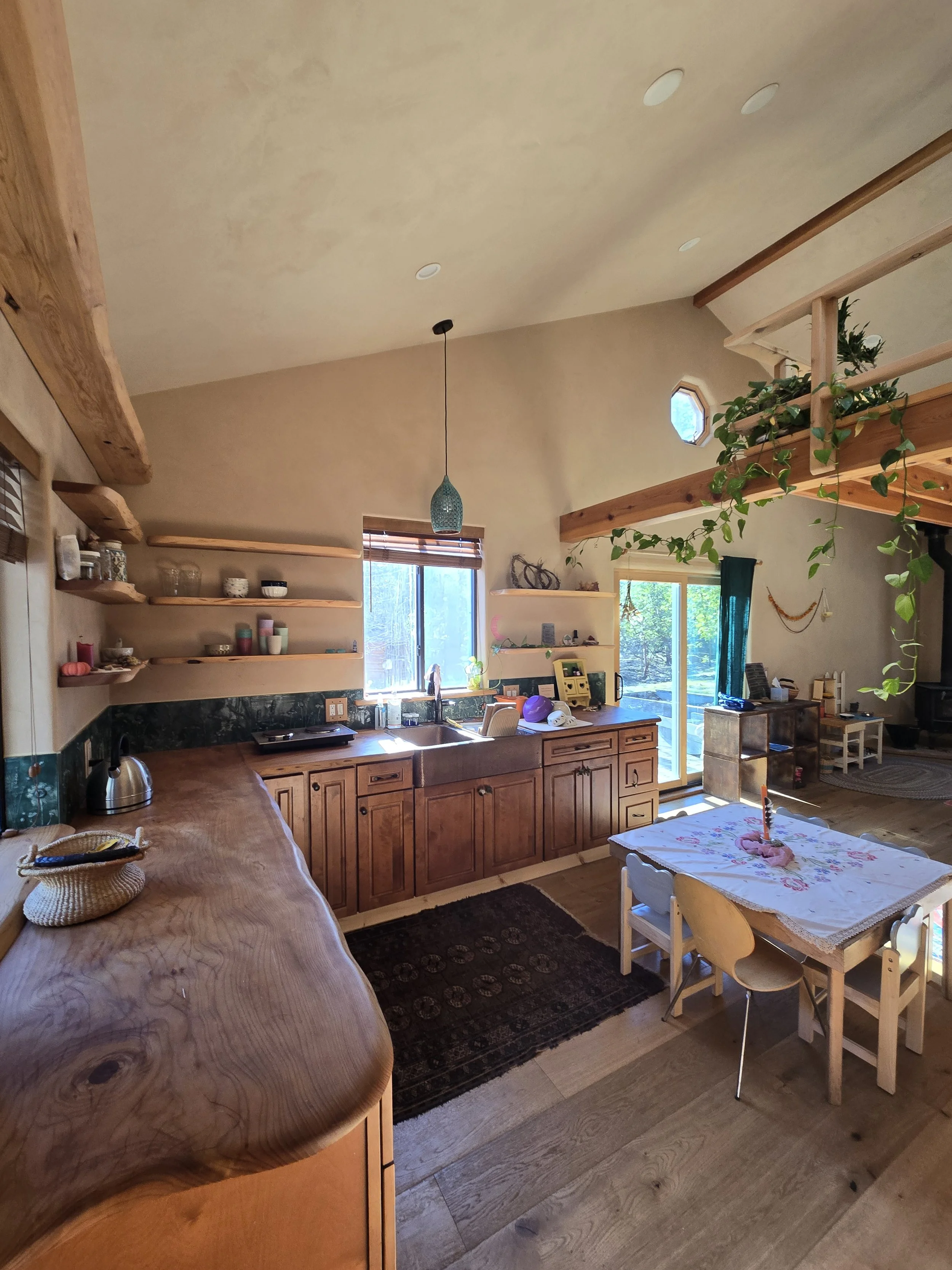 Comfort - Thermal dynamics and indoor environmental quality is improved through natural building. Mechanical heating and cooling systems are expensive and can be toxic to our health. Earthen walls also provide great acoustics.